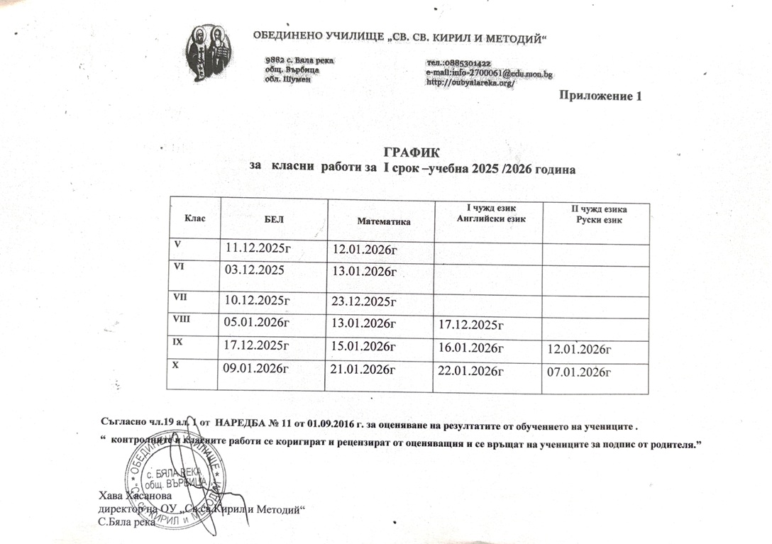 График за провеждане на класни работи през първи учебен срок на учебната 2025/2026 година График за провеждане на класни работи за втори срок на учебната 2025/2026 г. Как да премахнете тази реклама?