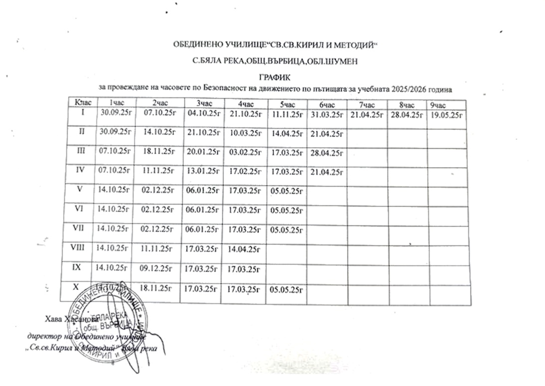 График за провеждане на часовете по Безопасност на движението по пътищата за учебната 2025/2026 г. Как да премахнете тази реклама?
