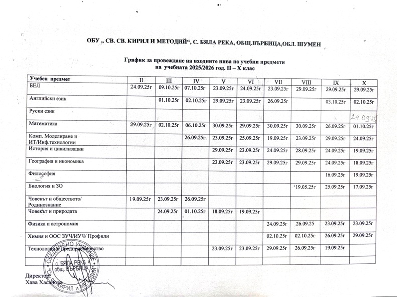 График за провеждане на часовете по Безопасност на движението по пътищата