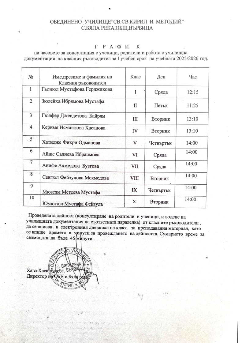 • График за провеждане на часовете по Безопасност на движението по пътищата